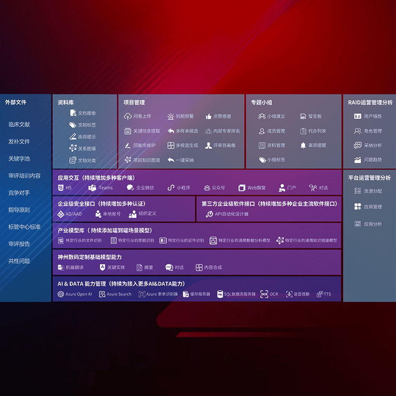 医疗器械产品上市前,,要熟悉严格与繁复评审标准,,整理分析监管机构指导文件中的海量信息。。。。企业急需一个智能化解决方案,,,,提升知识管理效率,,,,提高评审通过率,,,以提升其市场竞争力。。。。